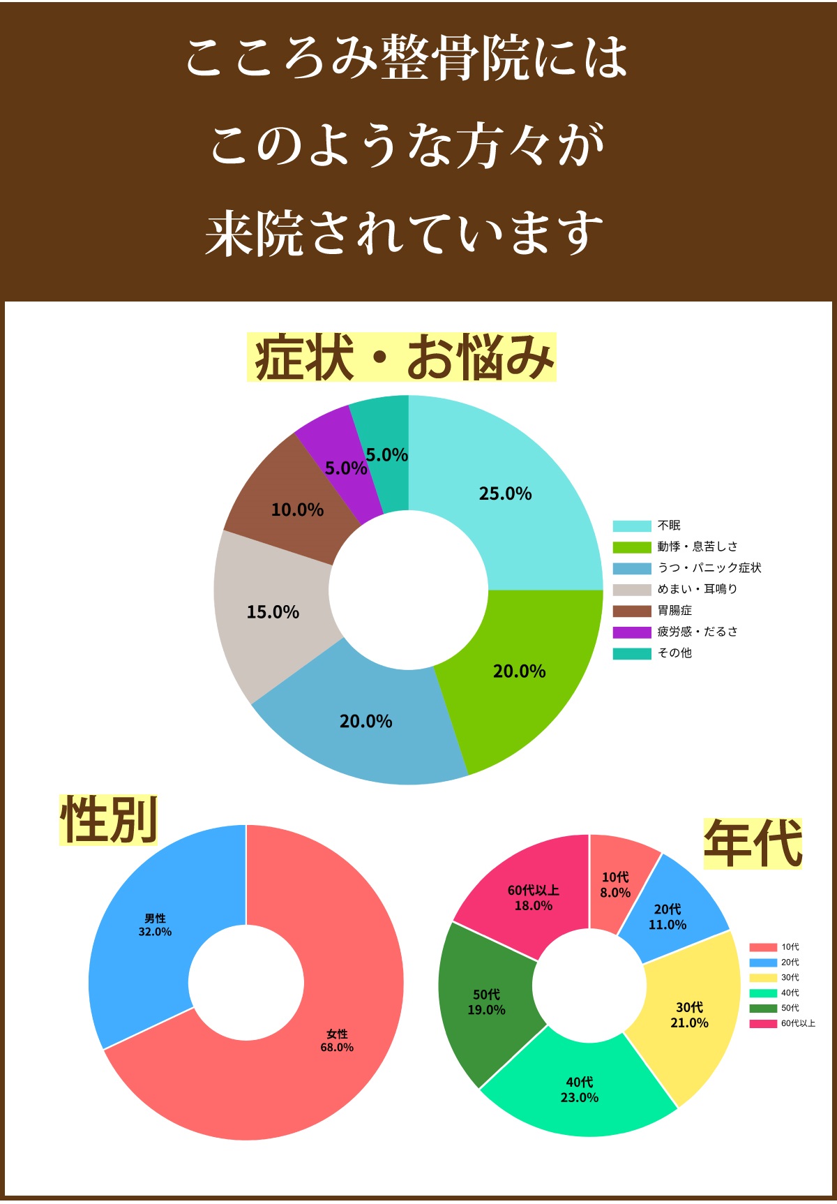 医療機関では原因を見つけることが出来ない自律神経の乱れを、当院では正確に把握し、適切な施術をすることで症状を改善に導いています。