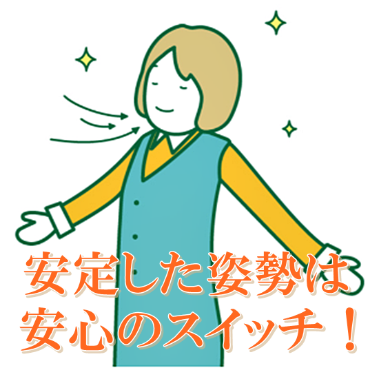 安定した姿勢は余計な力を使わずに立つことができ、呼吸も深く入りやすくなります。体が安定しているという“感覚”がそのまま脳に伝わり、脳は安心のスイッチを入れやすくなります。