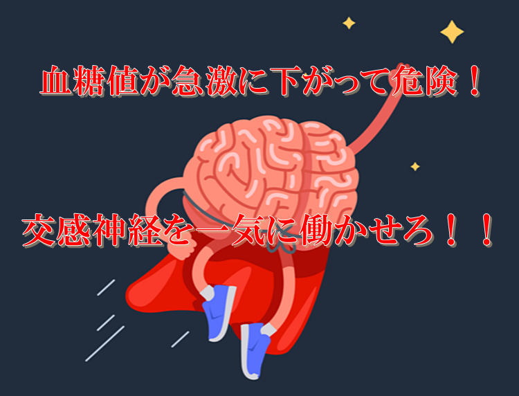 血糖値が下がると、まず脳が敏感に反応します。脳は主にブドウ糖をエネルギー源として働いているため、血糖が大きく下がった瞬間に、「これは危険な状態かもしれない」と判断します。
