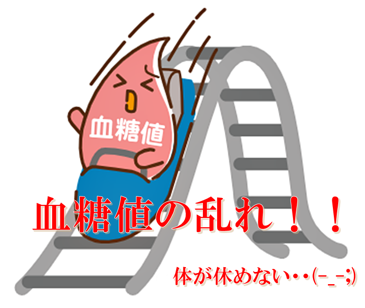 血糖値は上がったまま下がりにくくなり、そこに甘いものや糖質の多い食事が重なることで、体は常に“高い血糖を維持しようとする状態”になります
