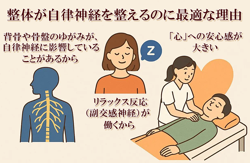 今回は、「整体で自律神経にどのような良い影響が起こるのか?」について、わかりやすくお話ししていきます。