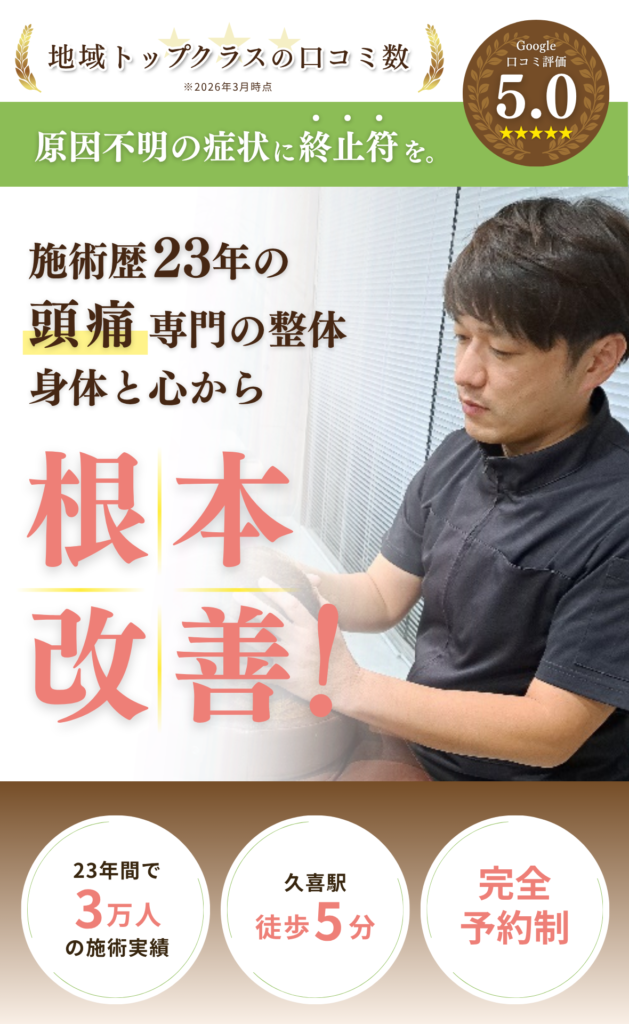 これから「頭痛の原因」「なぜ改善しないのか」「当院でどのようなアプローチで改善を目指すのか」などについてお話しますので、ぜひ参考にしていただければと思います。