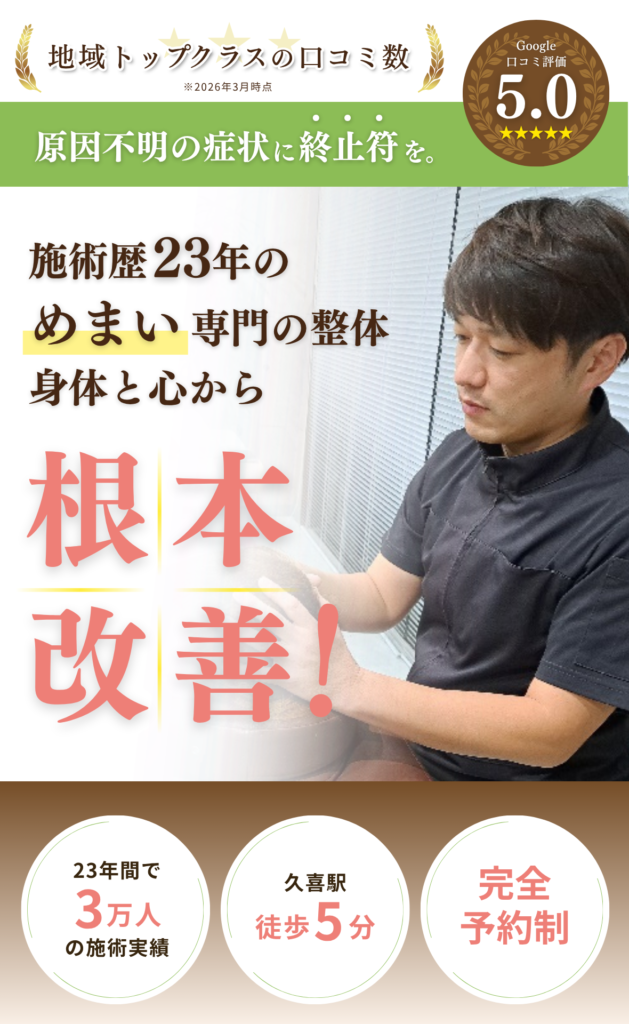 これから「めまいの原因」「なぜ改善しないのか」「当院でどのようなアプローチで改善を目指すのか」などについてお話しますので、ぜひ参考にしていただければと思います。